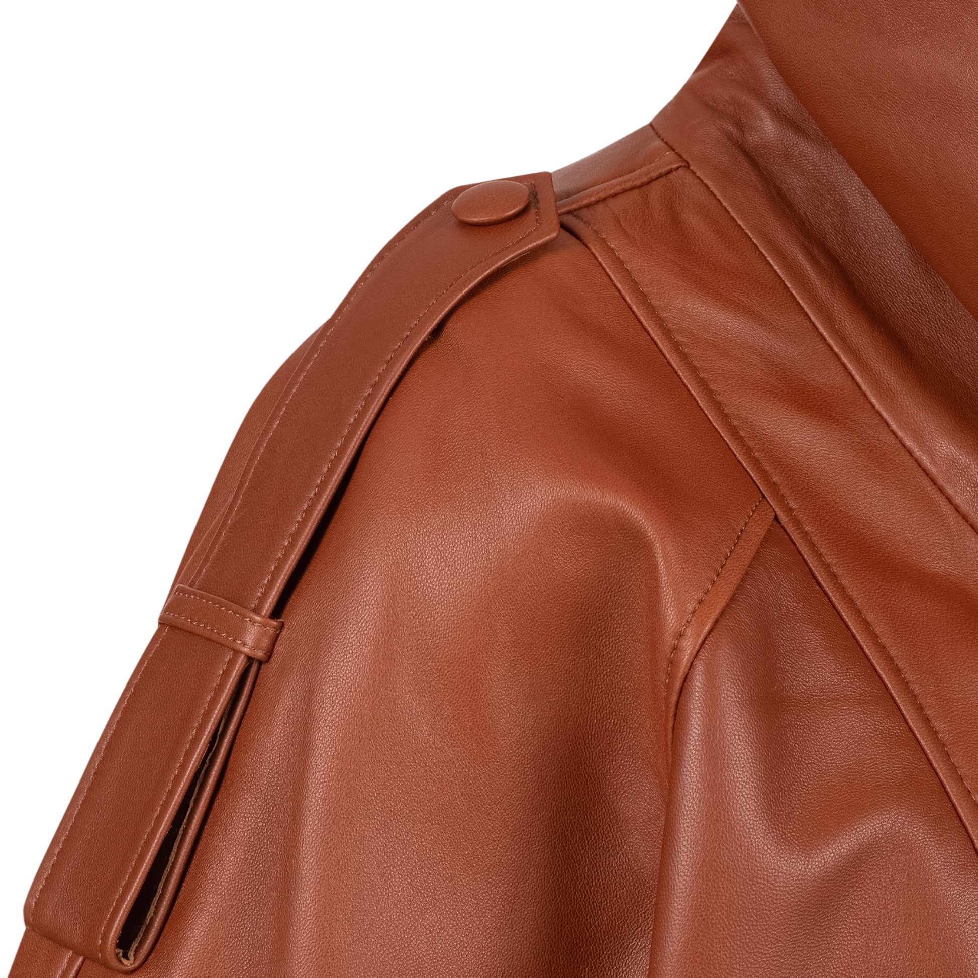 „Modern. Feminin. Markant. – Designer-Mantel aus echtem Leder“