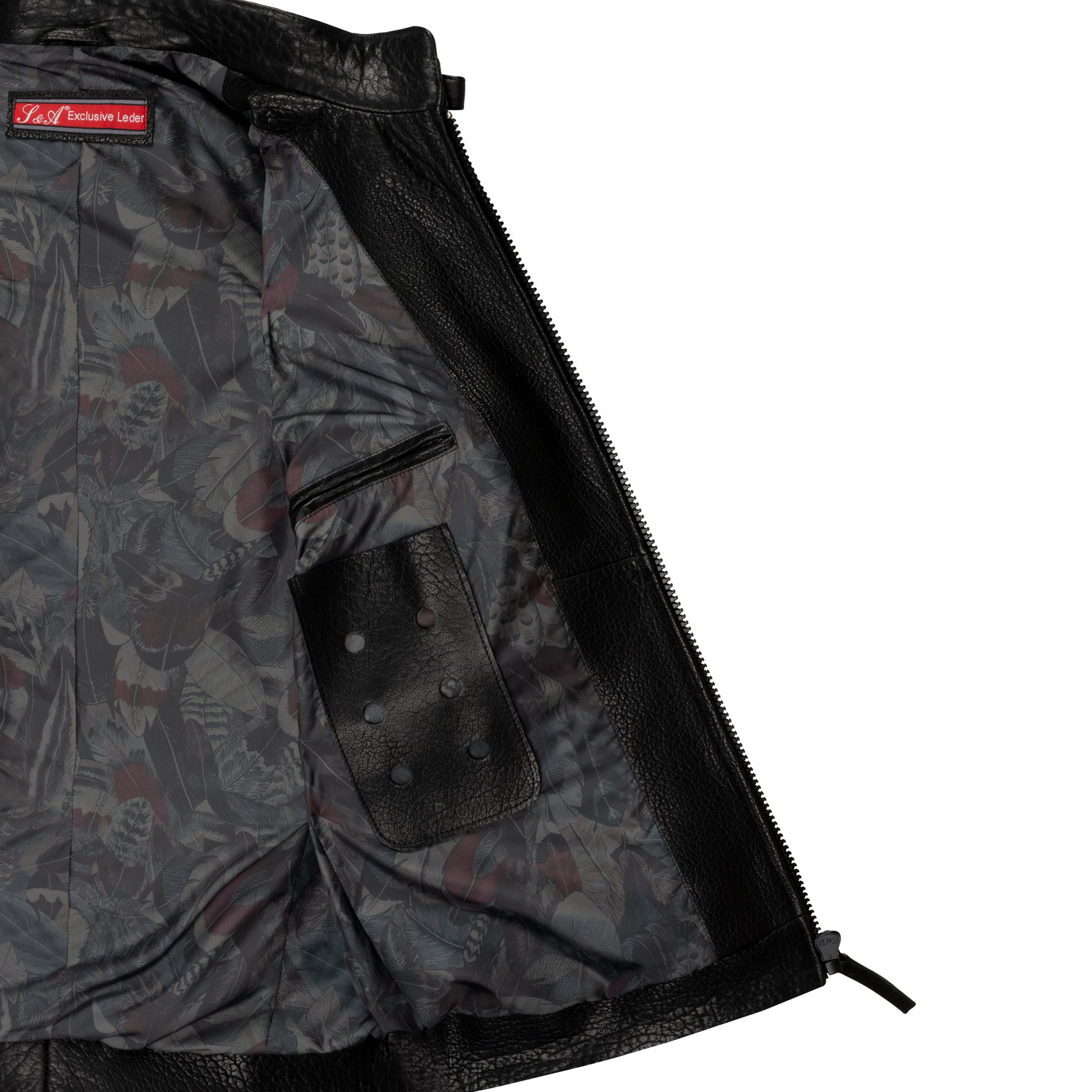 Das hochwertige Rindsleder ist besonders robust, strapazierfähig und dennoch angenehm geschmeidig. Es verleiht der Jacke eine natürliche Struktur und sorgt für Langlebigkeit.