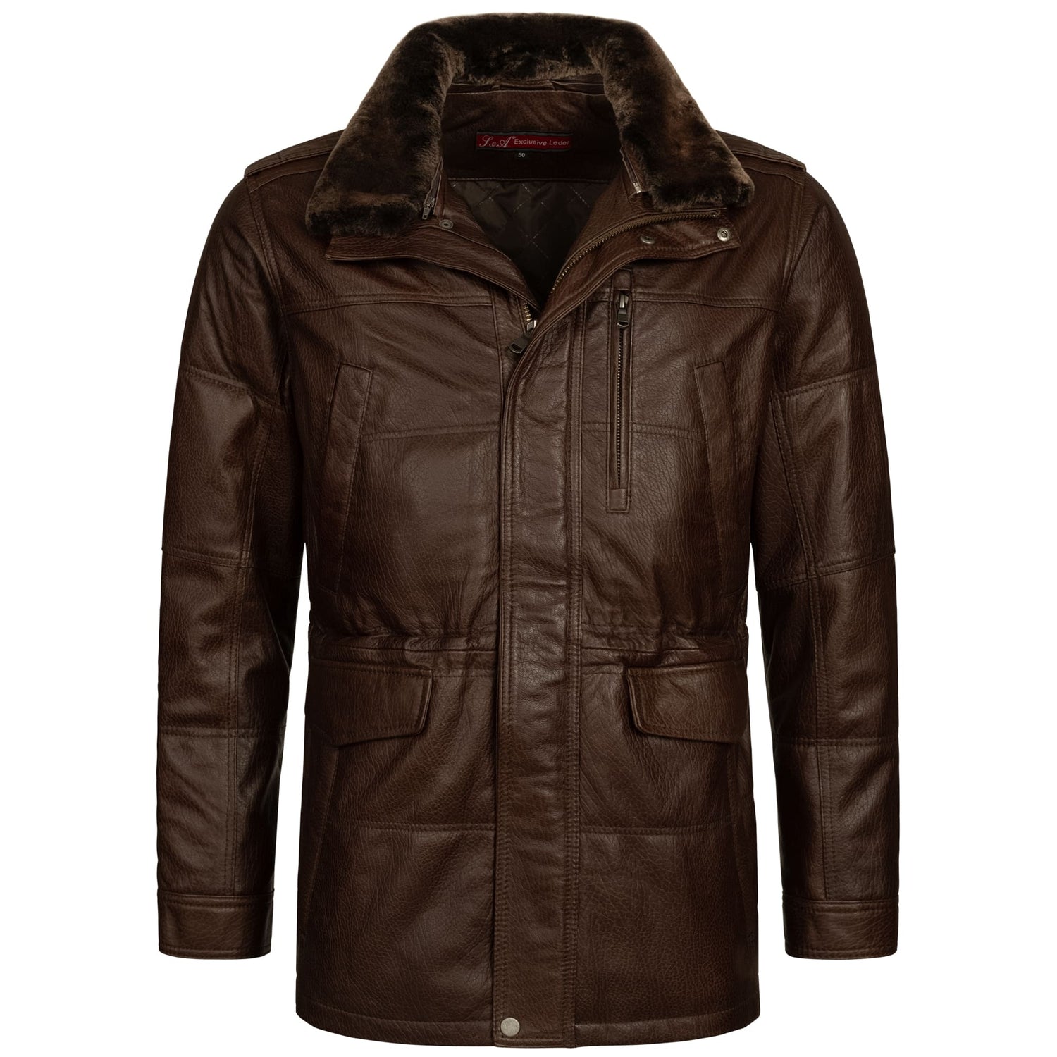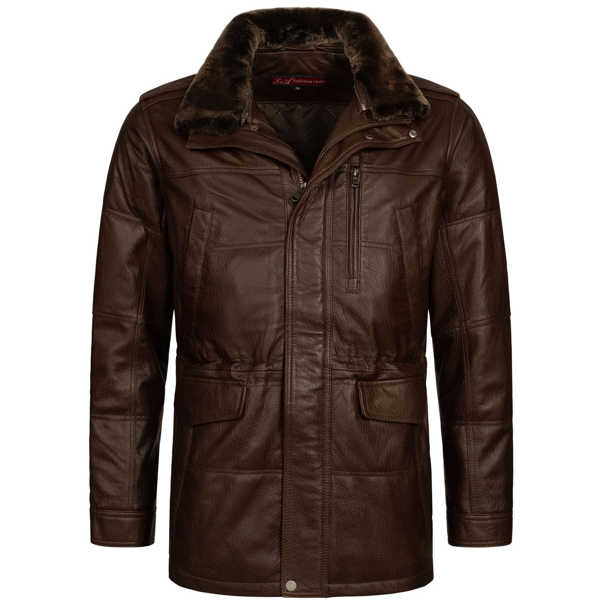 Aus echtem Lammnappa-Leder – Ein robustes und   zugleich geschmeidiges Leder mit stilvollem Print, das den Parka zu einem echten Hingucker machen.